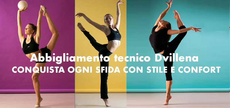 Abbigliamento e calzature per ginnastica ritmica e danza. Mezzepunte e abbigliamento che uniscono tessuti di elevata qualitร a design e vestibilitร ideali per questo sport.