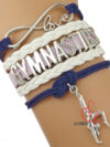 Bracciale in metallo anallergico color argento e pendenti che rappresentano gli attrezzi di ginnastica ritmica