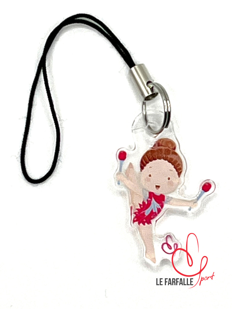 Simpatici ciondoli per cellulare con ginnasta e attrezzo.