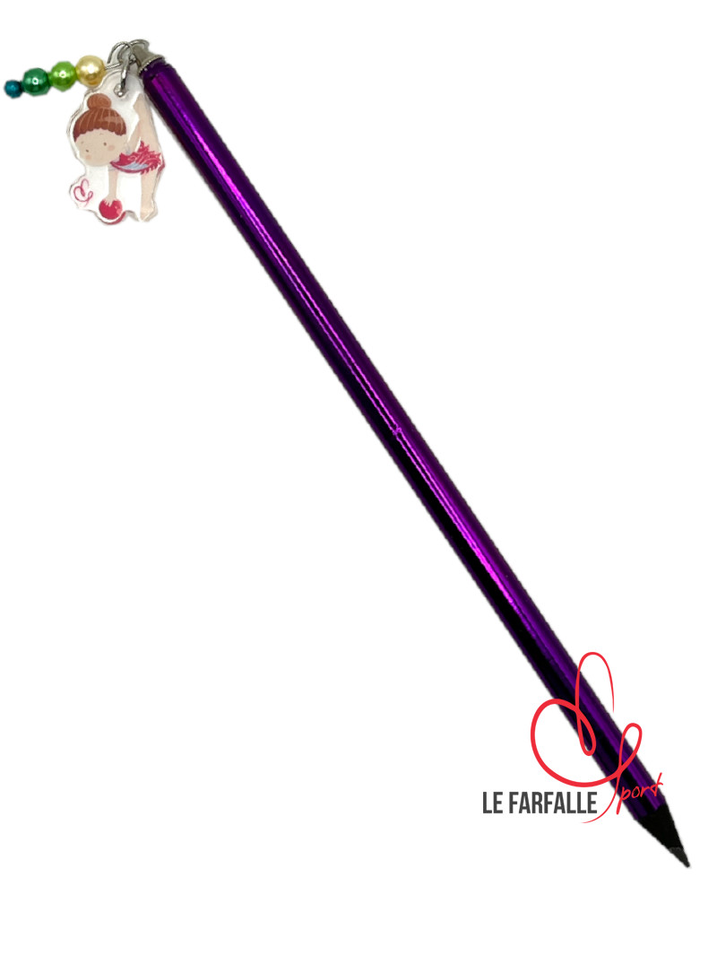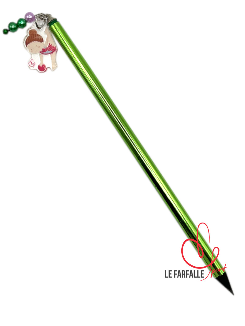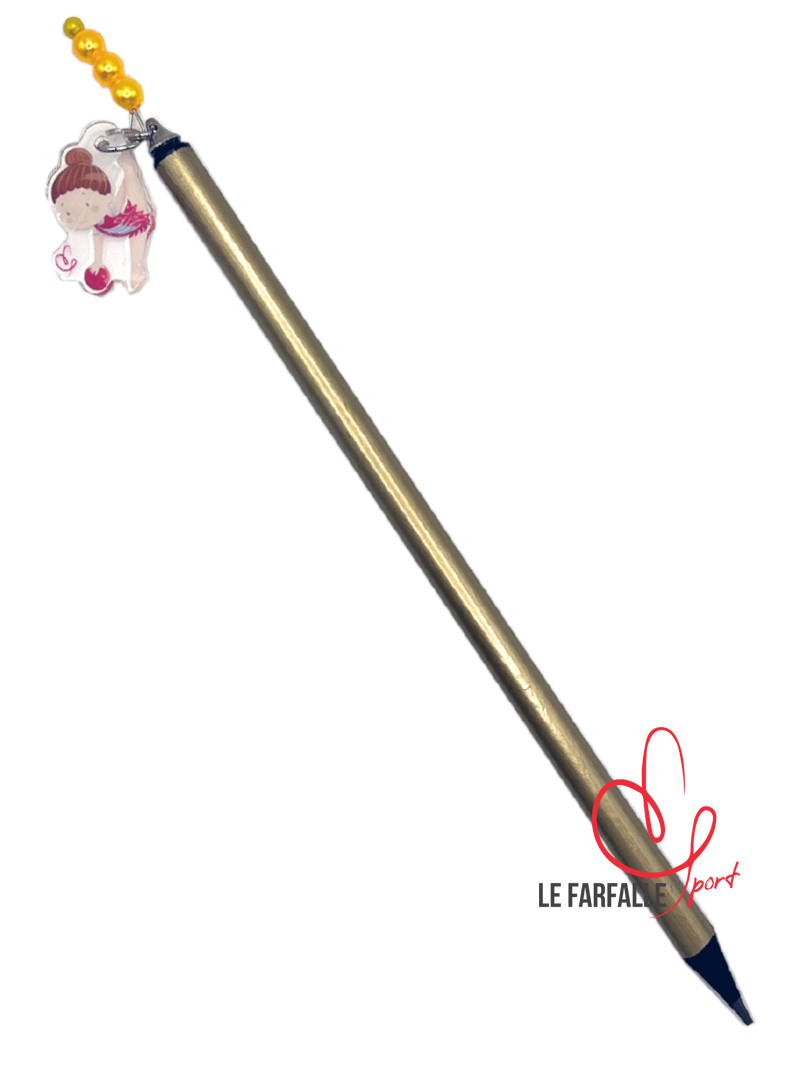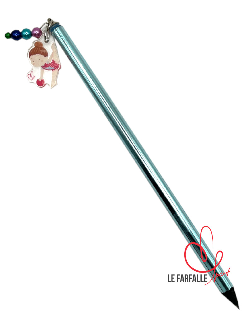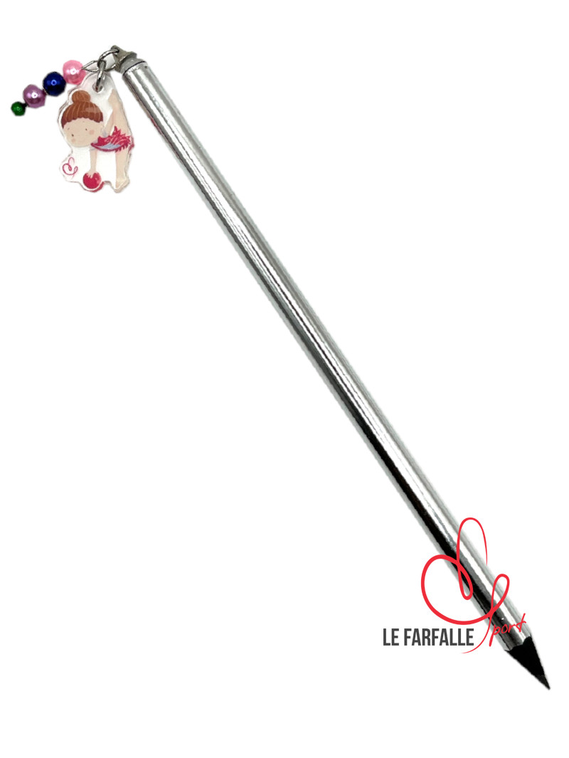 Matita rivestita in colore metalizzato e ciondolo in acrilico trasparente con ginnasta