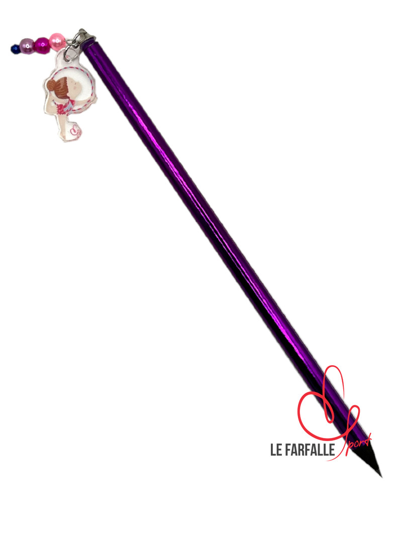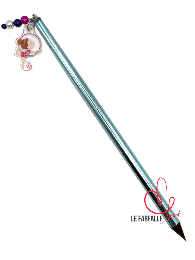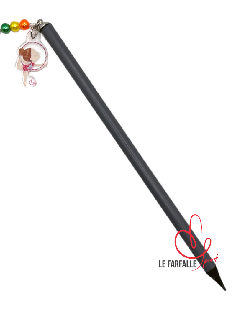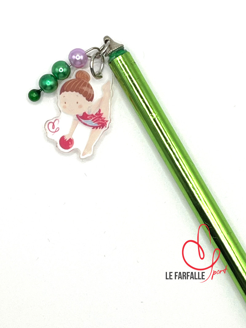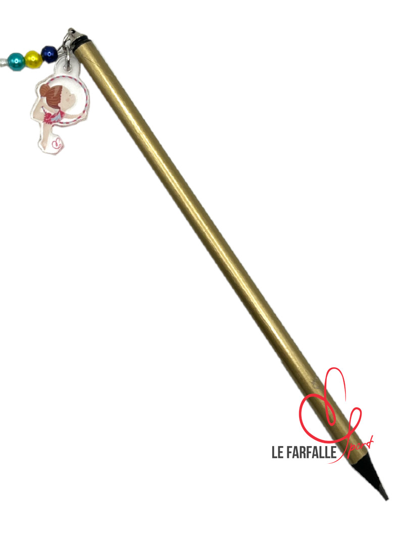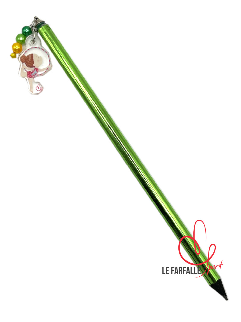 Matita rivestita in colore metalizzato e ciondolo in acrilico trasparente con ginnasta
