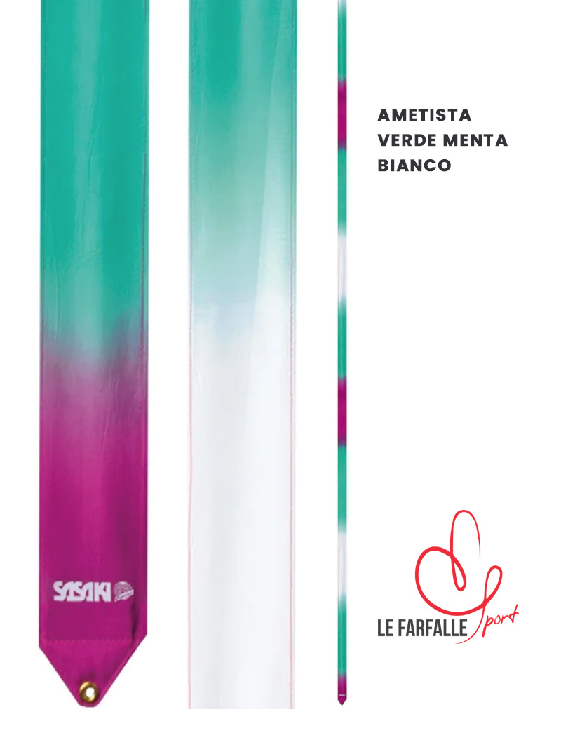 - Colorazione: utilizza una tecnologia speciale studiata appositamente per i nastri Sasaki che li rende luminosi e morbidi. Le sfumature vengono applicate su ogni singolo lato.