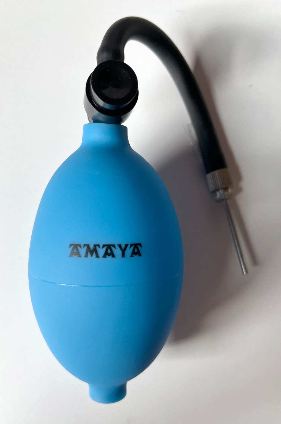 Pompa palmare AMAYA per il gonfiaggio e la regolazione della pressione delle palle Amaya con doppia funzione di gonfiaggio e sgonfiaggio; lo sgonfiaggio avviene con un pratico pulsante