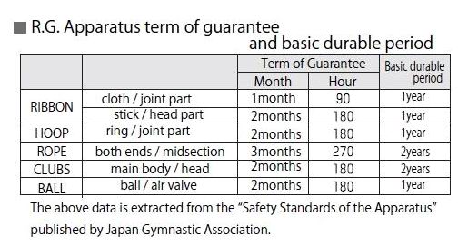 Attenzione: Per usufruire della garanzia legale, il consumatore deve denunciare al venditore il difetto di conformità entro e non oltre 1/3 mesi dalla data di acquisto, secondo le tabelle sotto riportate per ogni attrezzo. Vi ricordiamo che gli attrezzi di ginnastica ritmica sono prodotti soggetti a usura per utilizzo, non verranno considerati difetti di fabbricazione i difetti segnalati oltre la data richiesta dall’acquisto.